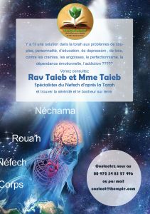 Telle est la 1re clé de la délivrance, qui commence en Adar. En ce mois, nous devons mettre de côté toutes nos volontés qui nous rendent tristes et amers, et nous concentrer sur la chance que nous avons d’être en vie et de pouvoir Le servir, et faire Sa volonté. Notre daat se reconnecte à hachem, nous réaliserons alors la réparation de notre nechama , et mériterons les délivrances du mois de Adar et de Nissan, le retour au gan éden avec la fin de toutes nos épreuves , la joie et la délivrance du peuple juif.